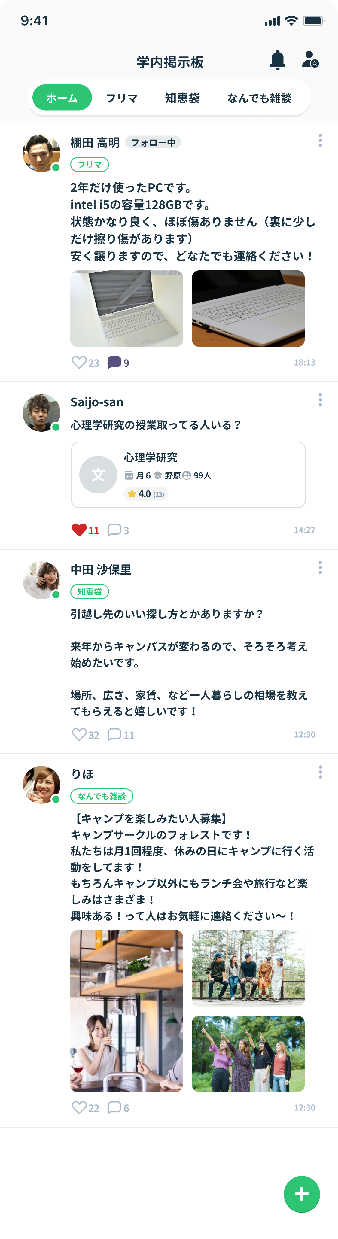 学生認証後は学内専用のSNSが利用可能になります。